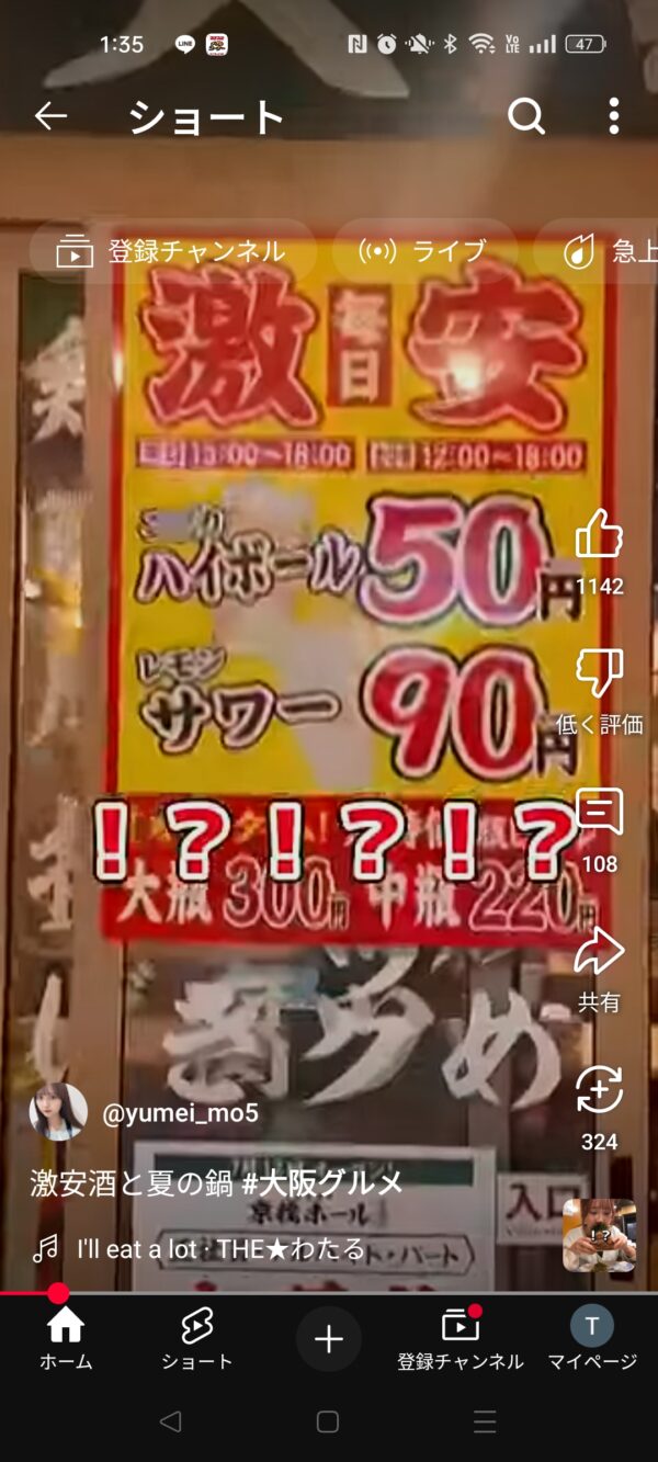 大阪市 都島区 大衆酒場 京橋ホール 北区 天神橋4 YouTube 居酒屋 ぼっかけ おでん 串カツ トンテキ コスパ? モーニング8時00分~1時00分