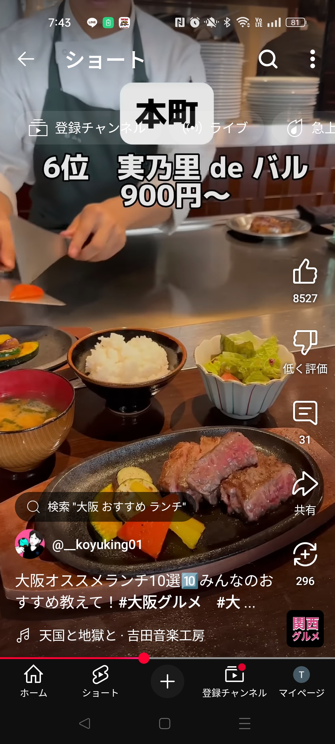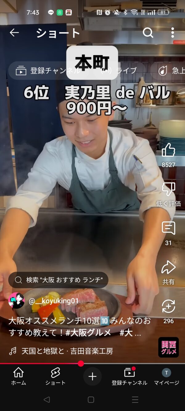 大阪市 中央区 本町 大阪グランベルホテル 1F・2F 実乃里deバル YouTube A5ランク黒毛和牛ステーキランチ 蕎麦 そば 宿 ディナーコース料理